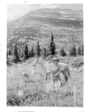Wildflowers--Indian Basket Grass--Mrs. Eaton and Horse, Glacier National Park
