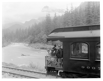 Cascades Trip--Observation End of Train Showing Skykomish River, Washington