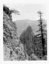The images presented here are part of a donation we are calling the Sawyer Collection. The images have come from multiple photography studios, some of them unidentified. Most were taken by the Kiser Studio of Portland, Oregon in the 'Teens and early 'Twenties, especially of rugged scenes in Crater Lake and Glacier National Parks and along the Columbia River. A small collection was taken 1905-07 by photographer H. G. Peabody of Massachusetts and Maine urban and coastal scenes. An anonymous collection portrays architectural and rural views taken in Central Mexico in the same era.