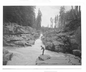 Man fishing, Eagle Falls and Rapids, Skykomish River, Washington