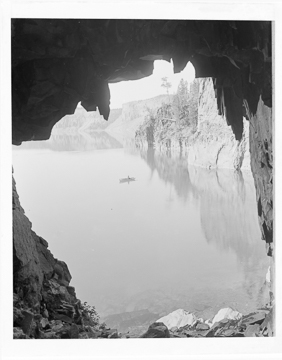Crater Lake circa 1915, showing rowboat from Grotto Cove.