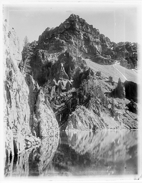 Crater Lake circa 1915, crags and reflections. Taken from the eastern shore looking toward Dutton Ridge.
