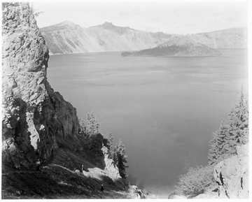 Crater Lake circa 1915, probably from the Lake Trail that ran through Eagle Cove to the water.