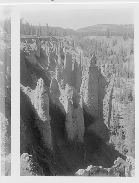 Wheeler Creek pinnacles, looking north toward the rim of Crater Lake, circa 1915.