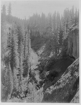 Crater Lake circa 1915, Cliffs, stream, likely on Munson Creek near Duwee Falls.