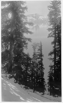 Crater Lake circa 1915, Snow, Trees with more evidence of an autumn snowfall.