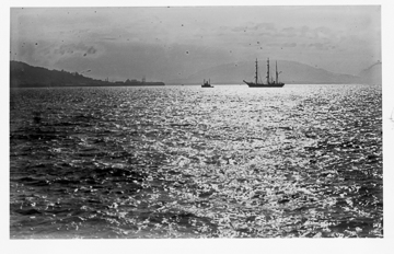 Ship and tugboat near Astoria on the Columbia River.