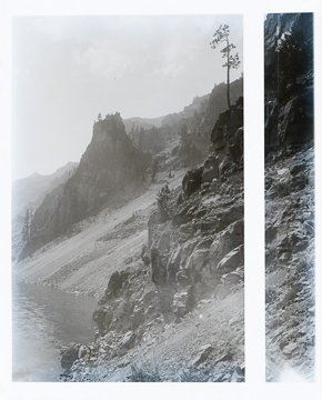 Crater Lake circa 1915 cliffs, view of portion of Devils Backbone looking south.