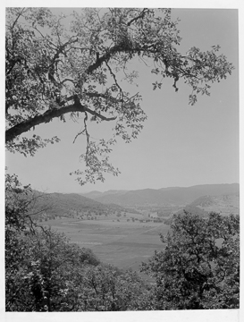 Wide vista circa 1915, Mt McLoughlin in background, with trees in foreground (same vista as SWY0003).
