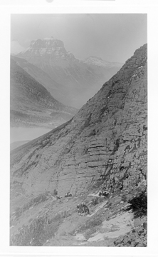 East Side of Gunsight Pass Showing Pack Train & Going-to-the-Sun Mountain