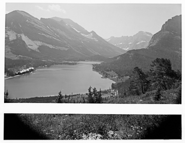 Glacier National Park--Many Glacier Camp Showing Hotel, Lake and Mountain from McDermitt Peak (Wide Angle Lens)