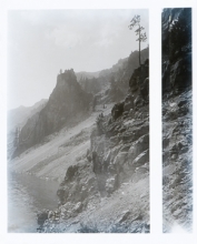 Crater Lake circa 1915, cliffs closeup. A portion of Garfield Peak.