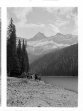 Pack Train on East Side of Gunsight Pass Showing Gunsight Lake, Going-to-the-Sun Mountain
