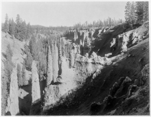Wheeler Creek pinnacles, looking north toward the rim of Crater Lake, circa 1915.