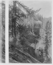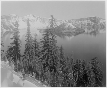Crater Lake Trees circa 1915, snow; this could be intended as proof of an autumn snowfall.