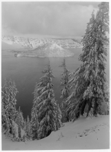 Crater Lake circa 1915, Snow, Trees with more evidence of an autumn snowfall.