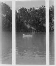 Crater Lake circa 1915, man in concession rowboat just below Rim Village.