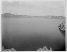 Crater Lake circa 1915, wide angle view from Garfield Peak showing the lake and the site of Rim Village to the west.