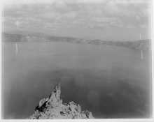 Crater Lake circa 1915 from Rim, spire in foreground; view north--possibly from Applegate Peak.