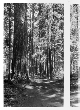 Crater Lake Highway (Fort Klamath-Rogue River Wagon Road), circa 1915, big trees