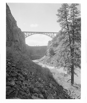 Crooked River--Down Crooked River, Looking Downstream from Bottom of Canyon Showing Bridge & Pine Tree