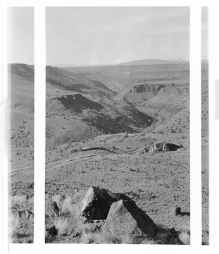 Oregon Trunk Railway--Looking Up Deschutes Canyon Showing Three Sisters from Pelton Station