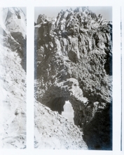 Looking through cliffs to Crater Lake circa 1915