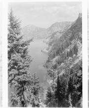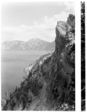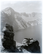 Crater Lake circa 1915, spire with Wizard Island