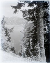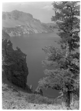 Crater Lake circa 1915 view of Mt. Scott w/tree.