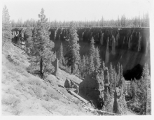 Crater Lake circa 1915, Cliffs, stream, likely on Munson Creek near Duwee Falls.