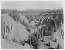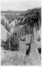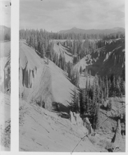 Wheeler Creek pinnacles, looking north toward the rim of Crater Lake, circa 1915.