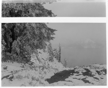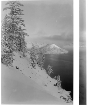 Crater Lake circa 1915, Snow, Trees with more evidence of an autumn snowfall.