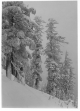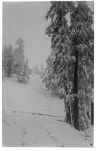 Crater Lake Trees circa 1915, Snow--could be near the rim.