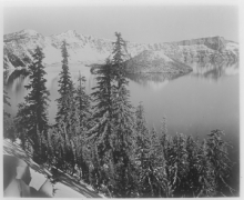 Crater Lake Trees circa 1915, snow; this could be intended as proof of an autumn snowfall.