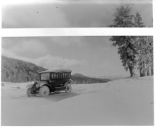 Crater Lake circa 1915, Old Car, Tour Bus in Snow