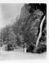 Columbia River Highway near Horsetail Falls, note concrete bridge.