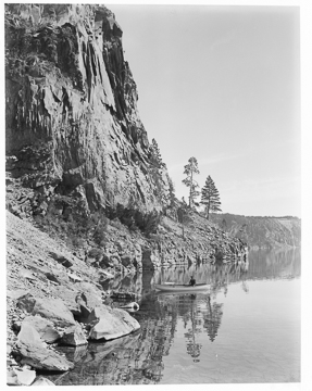 Crater Lake circa 1915, rowboat at the Palisades.
