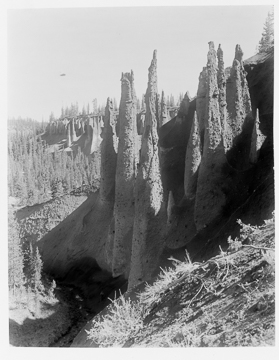 Near Crater Lake National Park\'s east entrance, the Wheeler Creek pinnacles, circa 1915.