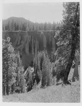 Crater Lake National Park, looking west from the Wheeler Creek pinnacles, circa 1915. Crater Peak is in the background.