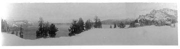 Panorama of Rim with Crater Lake Lodge (at right) circa 1915; taken at Rim Village.