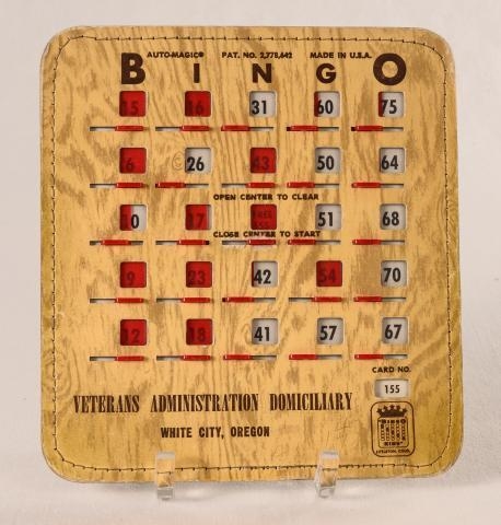 This bingo card was made for the Veterans Administration Domiciliary located in White City, Oregon.