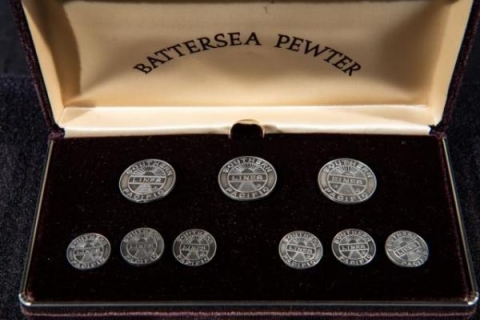 This is a pristine matched set of commemorative Battersea pewter buttons made for the Southern Pacific Railroad. All kinds of railroadiana including badges, paper, china and much more are widely sought after by collectors the world over.